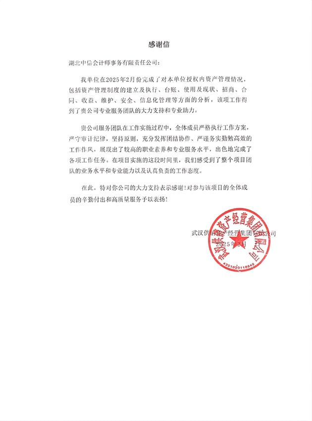 武漢供銷資產(chǎn)經(jīng)營集團(tuán)有限公司感謝信