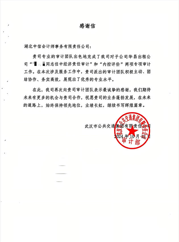 武漢市公共交通集團(tuán)有限公司感謝信