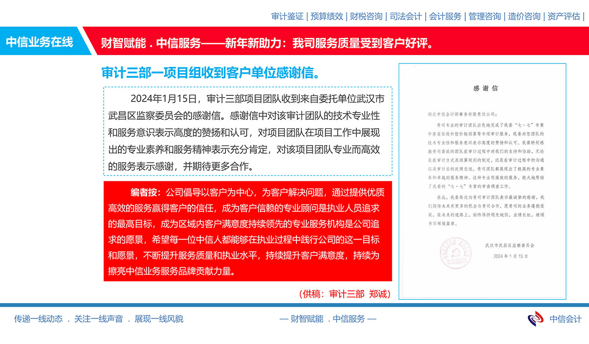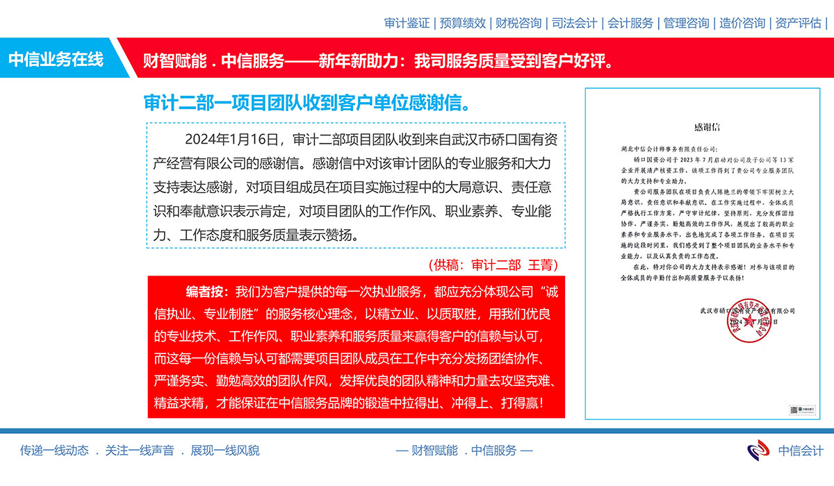 審計(jì)二部一項(xiàng)目團(tuán)隊(duì)收到客戶單位感謝信