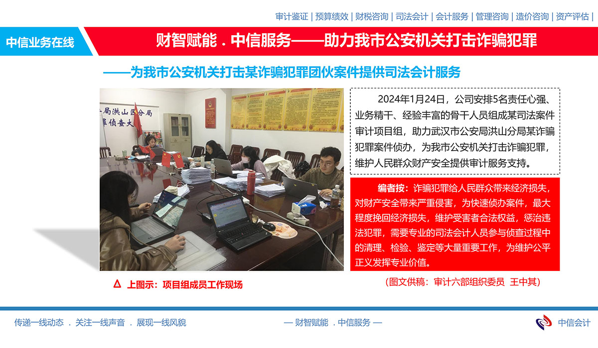 為我市公安機(jī)關(guān)打擊某詐騙犯罪團(tuán)伙案件提供司法會(huì)計(jì)服務(wù)