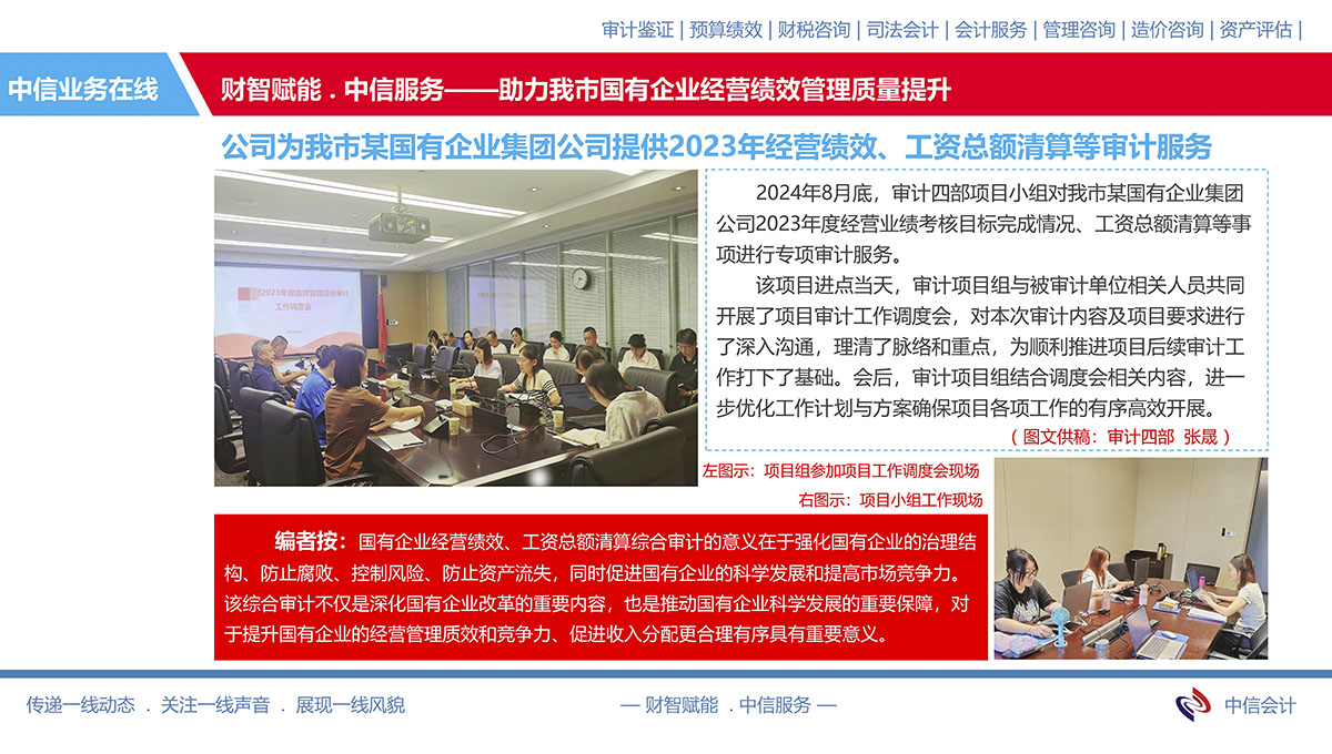 公司為我市某國有企業(yè)集團公司提供2023年經營績效、工資總額清算等審計服務