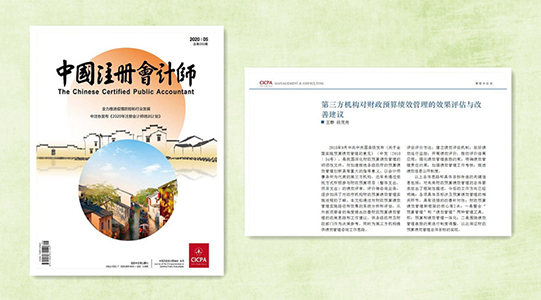 不僅是制度規(guī)范建設(shè)有中信“身影”,在基礎(chǔ)理論研究領(lǐng)域也有中信“聲音”。2020年5月18日,由王靜、段茂堯兩位同志聯(lián)名撰寫的《第三方機(jī)構(gòu)對(duì)財(cái)政預(yù)算績(jī)效管理的效果評(píng)估與改善建議》一文,成功發(fā)表在2020年第5期的《中國(guó)注冊(cè)會(huì)計(jì)師》上,在行業(yè)最高期刊發(fā)表論文。在對(duì)外鞏固中信“品牌”的同時(shí),進(jìn)一步激勵(lì)了全體中信人深耕業(yè)務(wù)做精做優(yōu),助推行業(yè)高質(zhì)量發(fā)展中彰顯中信作為。