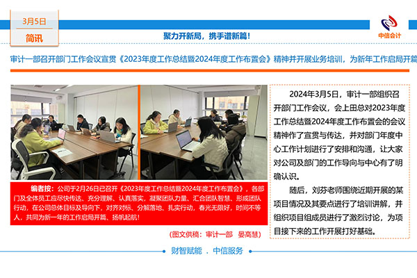 審計(jì)一部召開(kāi)部門(mén)工作會(huì)議宣貫《2023年度工作總結(jié)暨2024年度工作布置會(huì)》精神并開(kāi)展業(yè)務(wù)培訓(xùn),為新年工作啟局開(kāi)篇 -