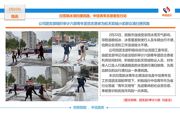—— 湖北中信會(huì)計(jì)師事務(wù)所黨團(tuán)青年志愿者為社區(qū)群眾掃雪除冰清掃便民路 -