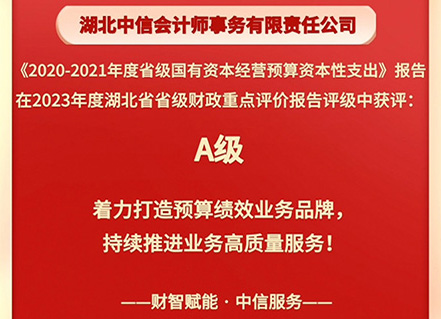 喜報(bào):在2023年度湖北省省級(jí)財(cái)政重點(diǎn)評(píng)價(jià)報(bào)告評(píng)級(jí)中獲評(píng)A級(jí)