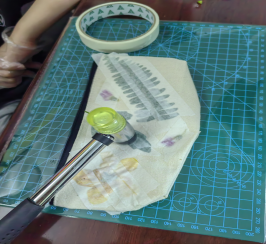 本次活動以非遺植物拓印 --“拓花錘草”為主要內(nèi)容展開,它屬于植物染色的特殊技藝,通過布局、敲打、固色等步驟,將花草的汁液拓在布上,無需添加化學(xué)藥劑、更不用費時熬煮,就能留下大自然的香氣、紋理、色彩,創(chuàng)造大自然的生態(tài)環(huán)境美學(xué)。