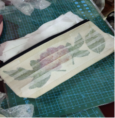 孩子們將洗凈擦干的花草樹葉按照自己喜歡的方式排列,并用透明膠帶將植物固定在筆袋上,有的整齊排列,有的錯落有致。