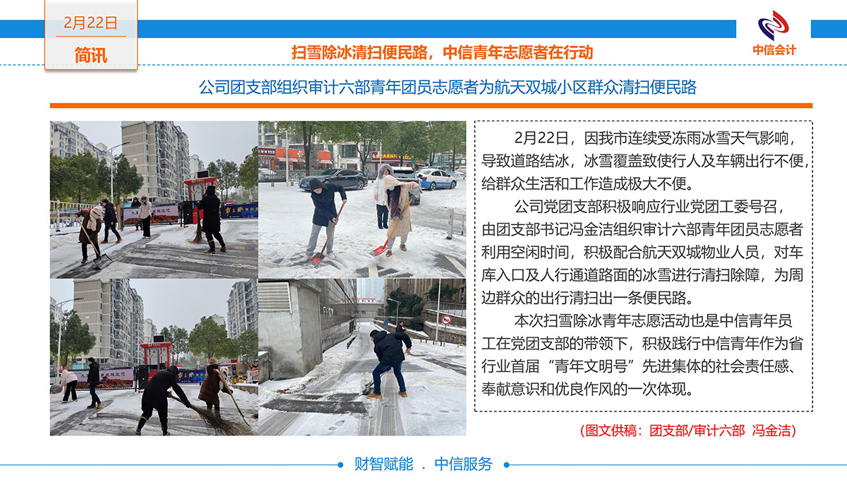 掃雪除冰清掃便民路,中信青年志愿者在行動