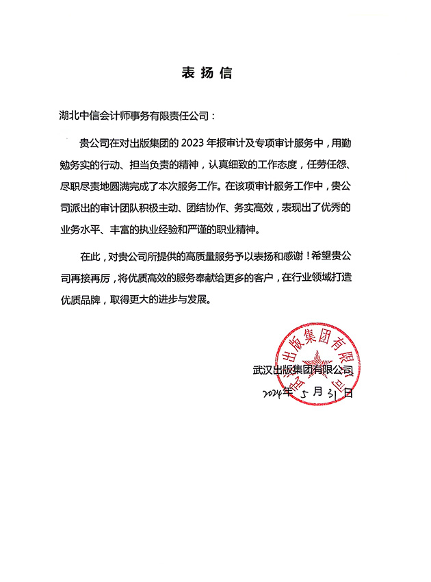 武漢出版集團(tuán)表?yè)P(yáng)信