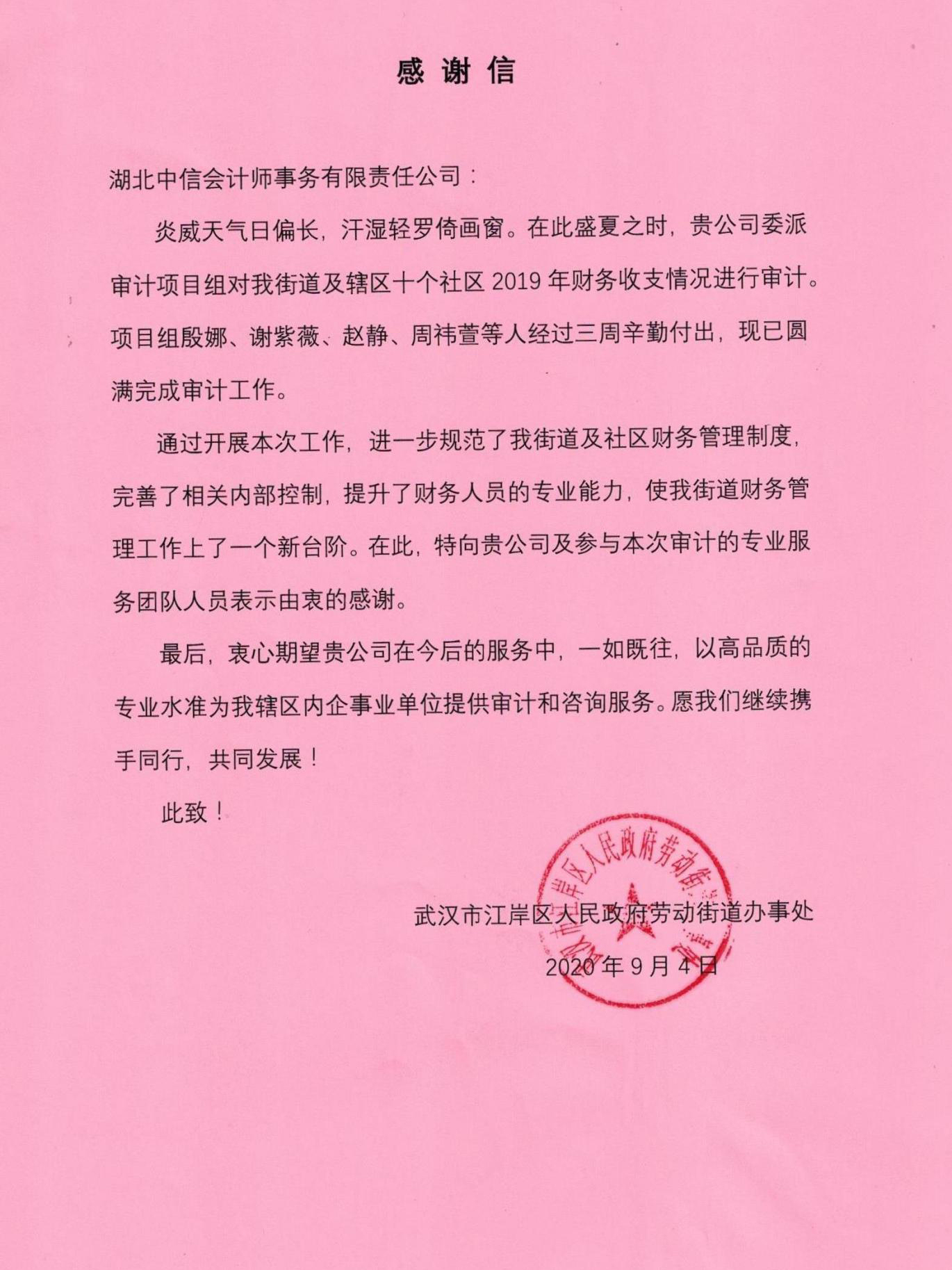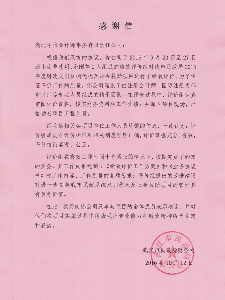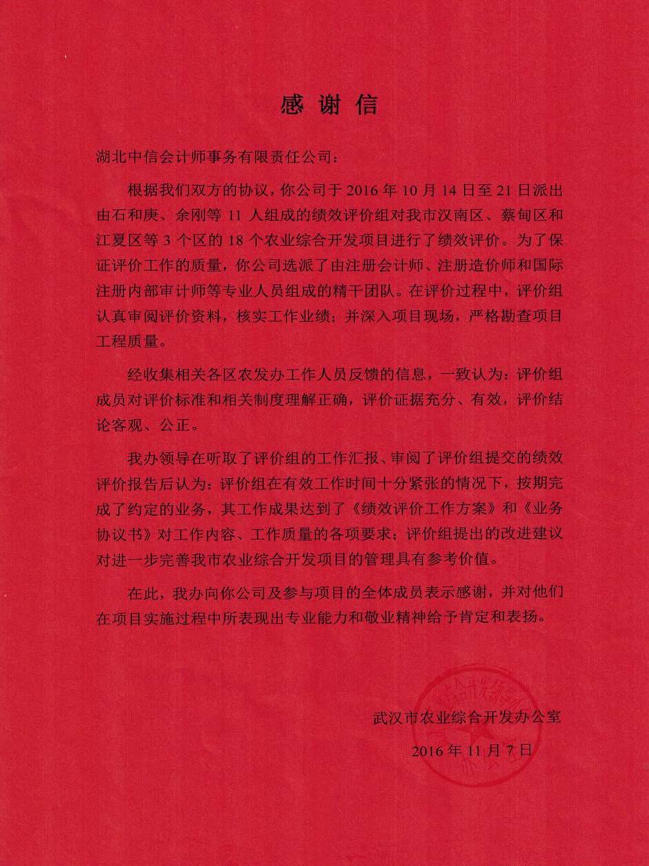 武漢市農(nóng)業(yè)綜合開發(fā)辦公室績效評價項目感謝信