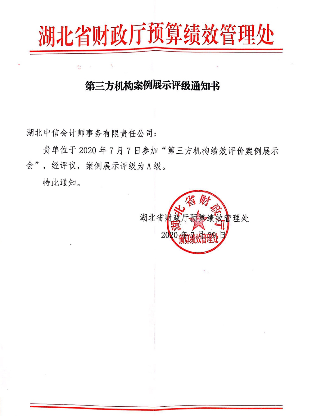 第三方機構(gòu)案例被省財政廳績效管理處評定A級通知書