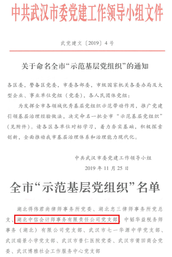 2019年度武漢市注冊會計(jì)師行業(yè)“先進(jìn)基層黨組織”