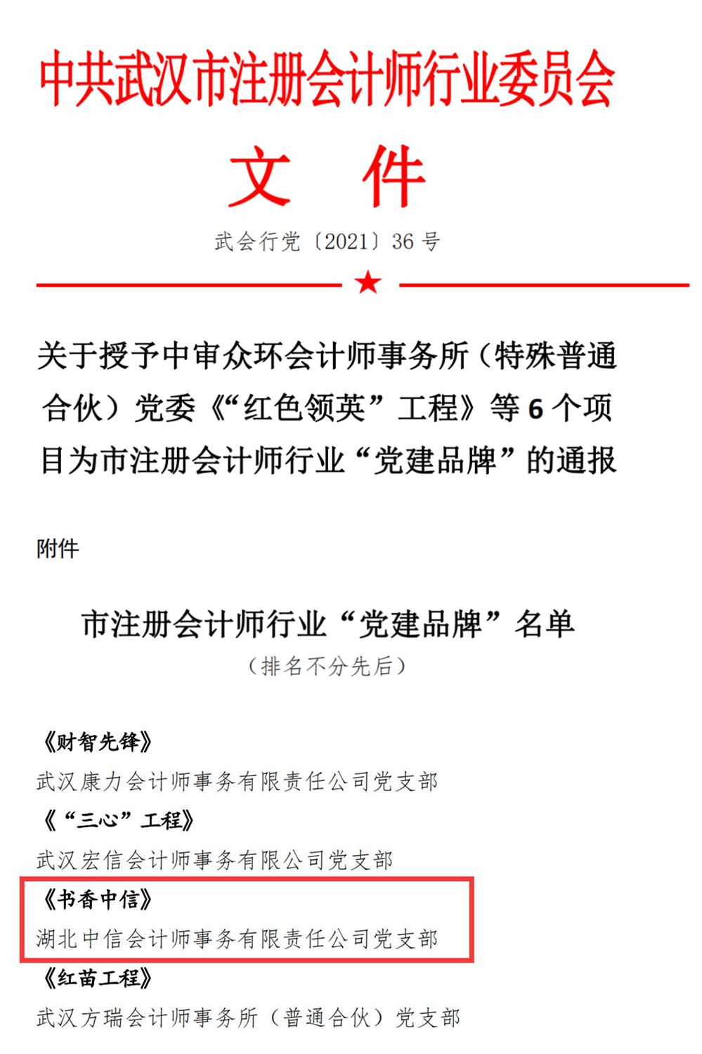 《書香中信》被授予武漢市注冊會計(jì)師行業(yè)黨委“黨建品牌”